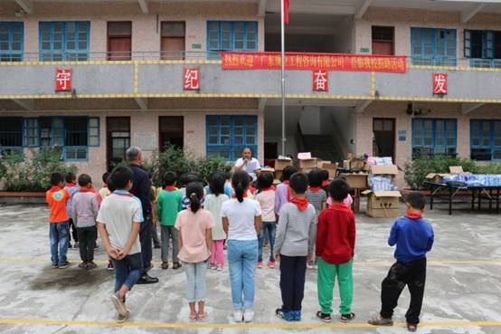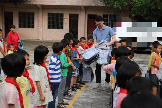 早上九点,米兰milan(中国)带着一如既往的初心从公司楼下出发, 从广州前往肇庆广宁县石咀镇。经过连续不断的蜿蜒山路,三个多小时后米兰milan(中国)到达了石咀镇。石咀镇,这个米兰milan(中国)来了三年的地方,感觉是那么的熟悉,从镇上到周围的村庄都能看到小学生的身影。为了不打扰学生休息,米兰milan(中国)选择下午14:00到达建中小学。此时已经有学生陆续返校,见米兰milan(中国)到来,学生们打开了校门,不约而同喊着“欢迎欢迎”,脸上洋溢着欢欣的笑容。建中村委、建中小学的校长、老师以石咀镇中心小学校长及副校长及学生们已集中等候,公司购买的打印机、书包、校服、体育用品、学习文具以及图书均摆放在教室门口的红旗下。根据学校的安排,现场举办了简单而有意义的捐赠仪式,为感谢公司的捐助,校长还赠送了 “大爱无疆,捐资助学” 的锦旗。